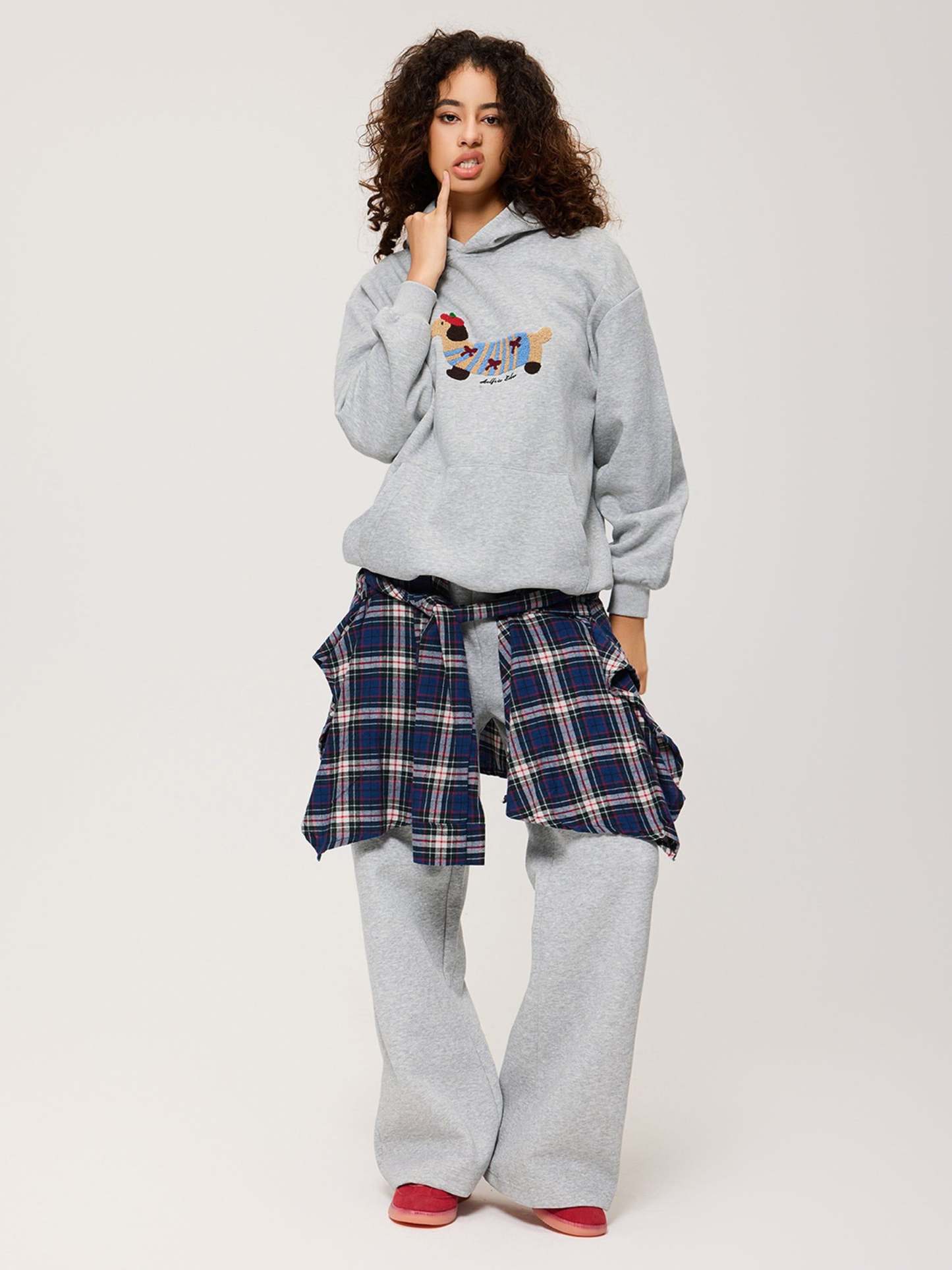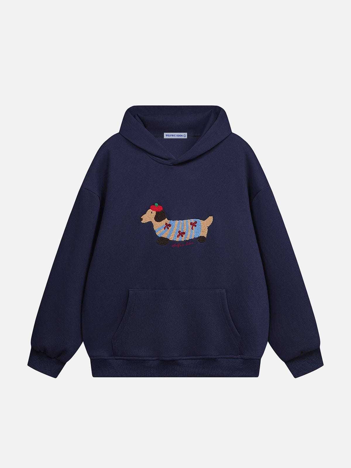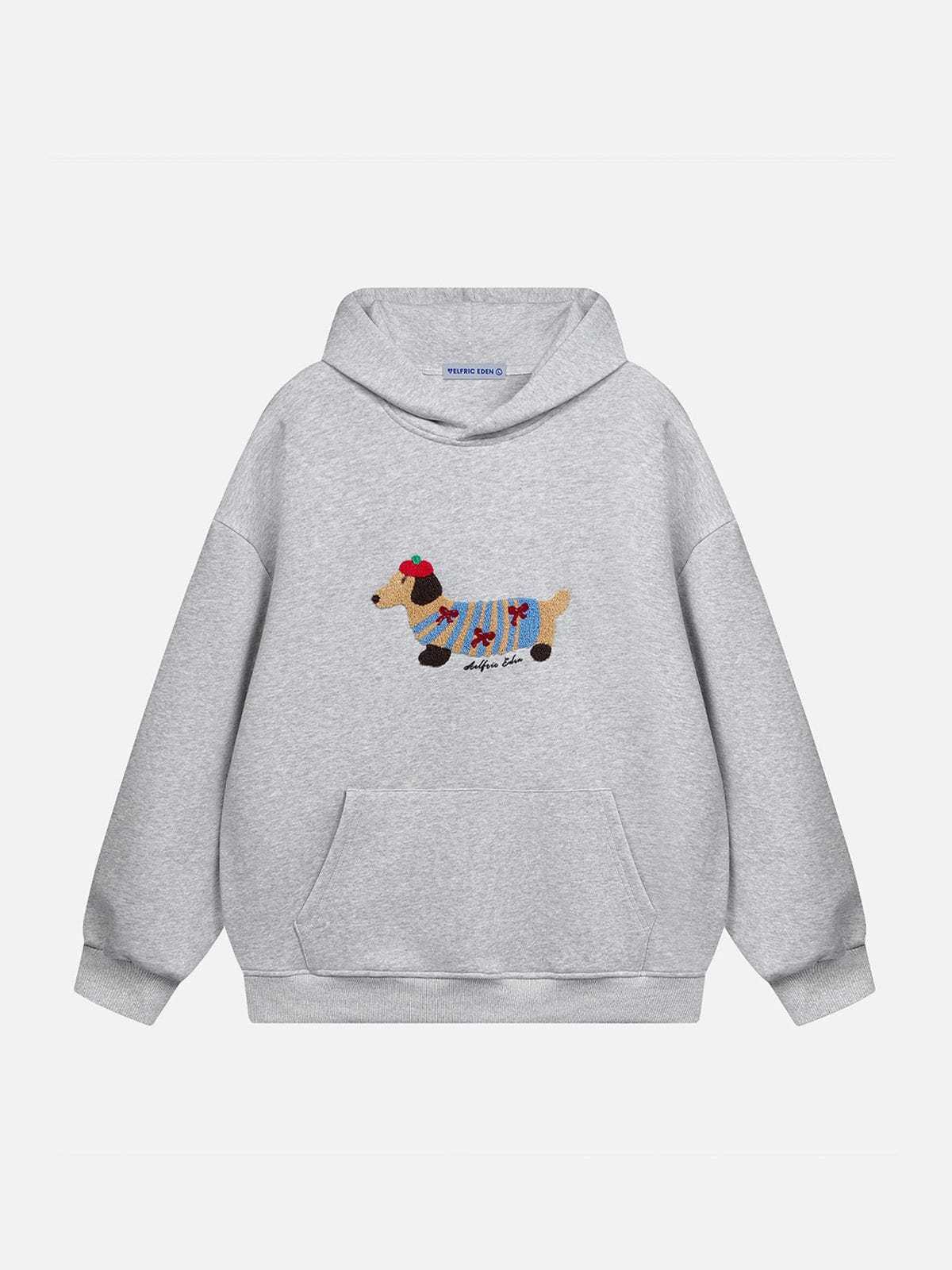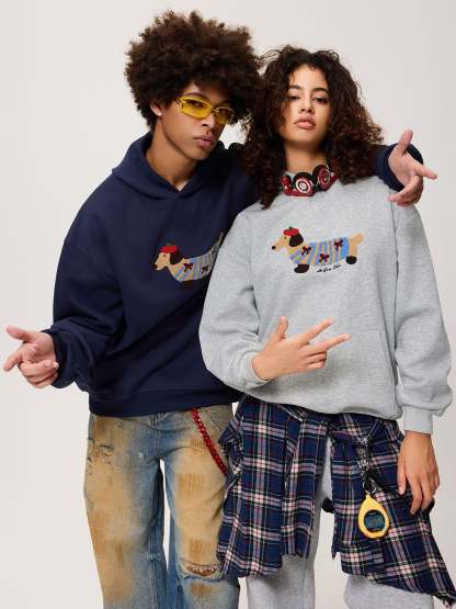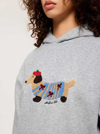 This hoodie features an adorable embroidered dog motif on the front — crafted in textured terry stitching for a vivid, 3D look. The soft cotton-blend fabric and relaxed silhouette make it your new everyday essential for both comfort and personality.