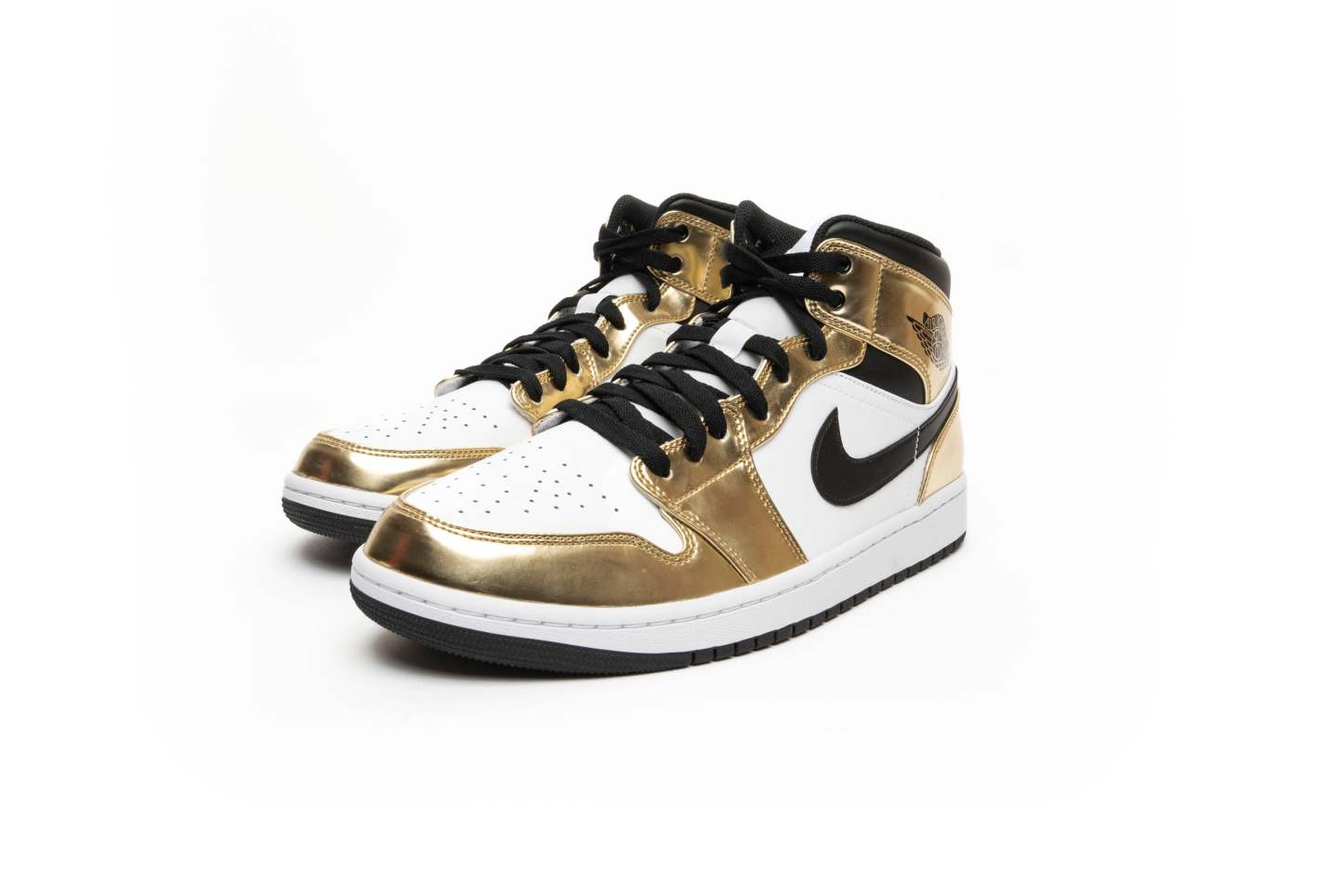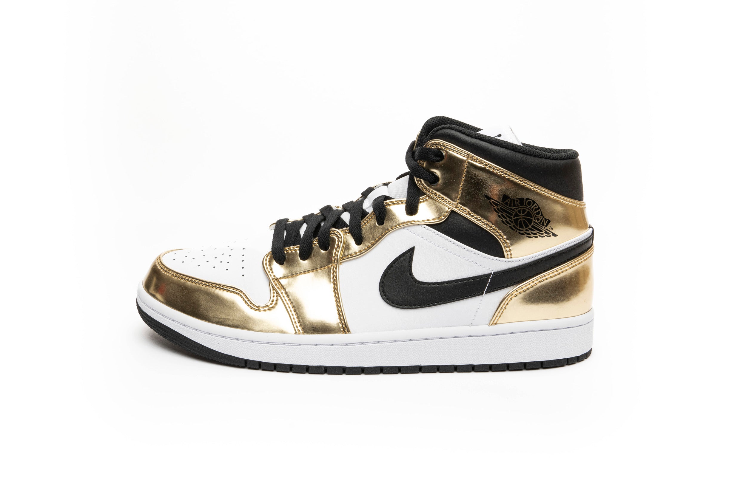 The Air Jordan 1 Mid got the golden treatment in addition to the Jordan 1 High in 2020. This Jordan Mid Metallic Gold model dons a shiny and reflective upper that is sure to make anyone take a second look at your feet