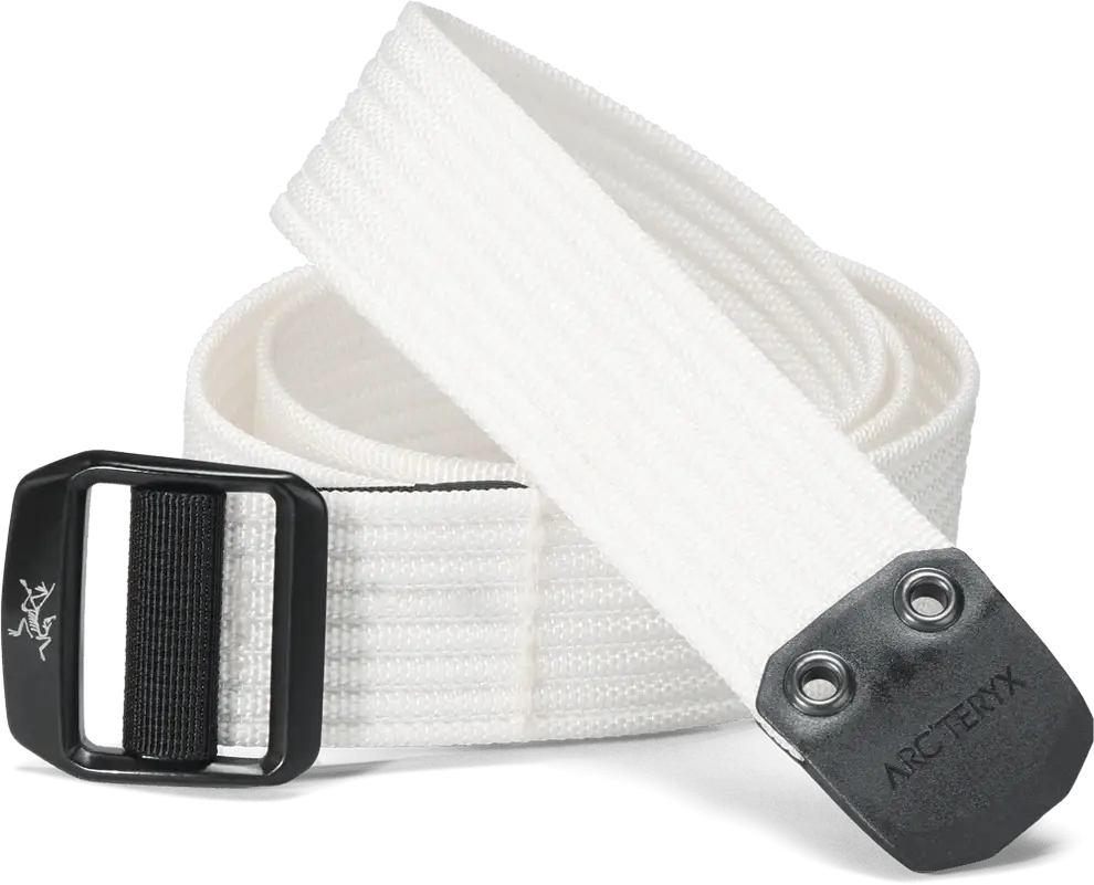 The classic, our 38mm - 1.5 inches - heavy-duty webbing belt has contrasting stitch detail and a metal buckle featuring the Arc'teryx logo. Strong, secure, and versatile, it’s perfect for holding your pants up.