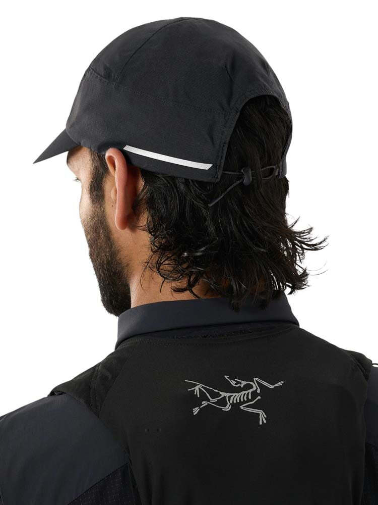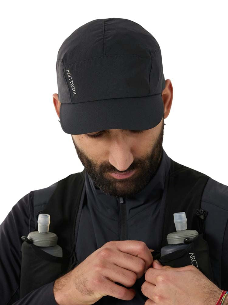 Ultralight, breathable cap providing for trail running in summer weather. The cap that completes your trail running kit. Made from a mini-ripstop stretch polyester, it's incredibly light, packable, breathable, and comfortable. The DWR (Durable Water Repellent) treatment helps minimize moisture pick-up. The headband adjusts with a single pull for a secure fit, and reflective elements add low-light visibility. Our lightest, most compact hat, it wears under a helmet or hood.