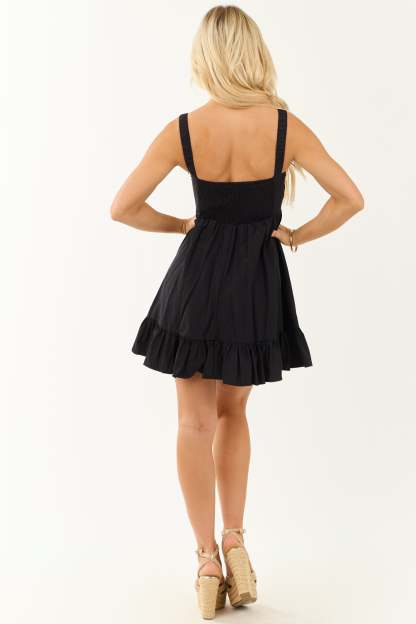 Black Sleeveless Sweetheart Neck Mini Dress