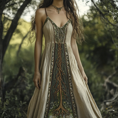 Celtic Myth Tree Of Life Print Women's Linen Halter Dress