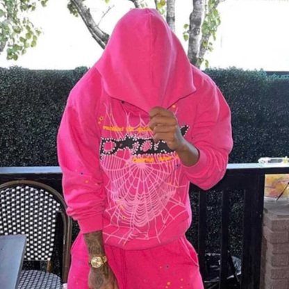 Cobweb Pattern Hooded Sweatshirt Hip Hop Unisex Loose Sweatshirt