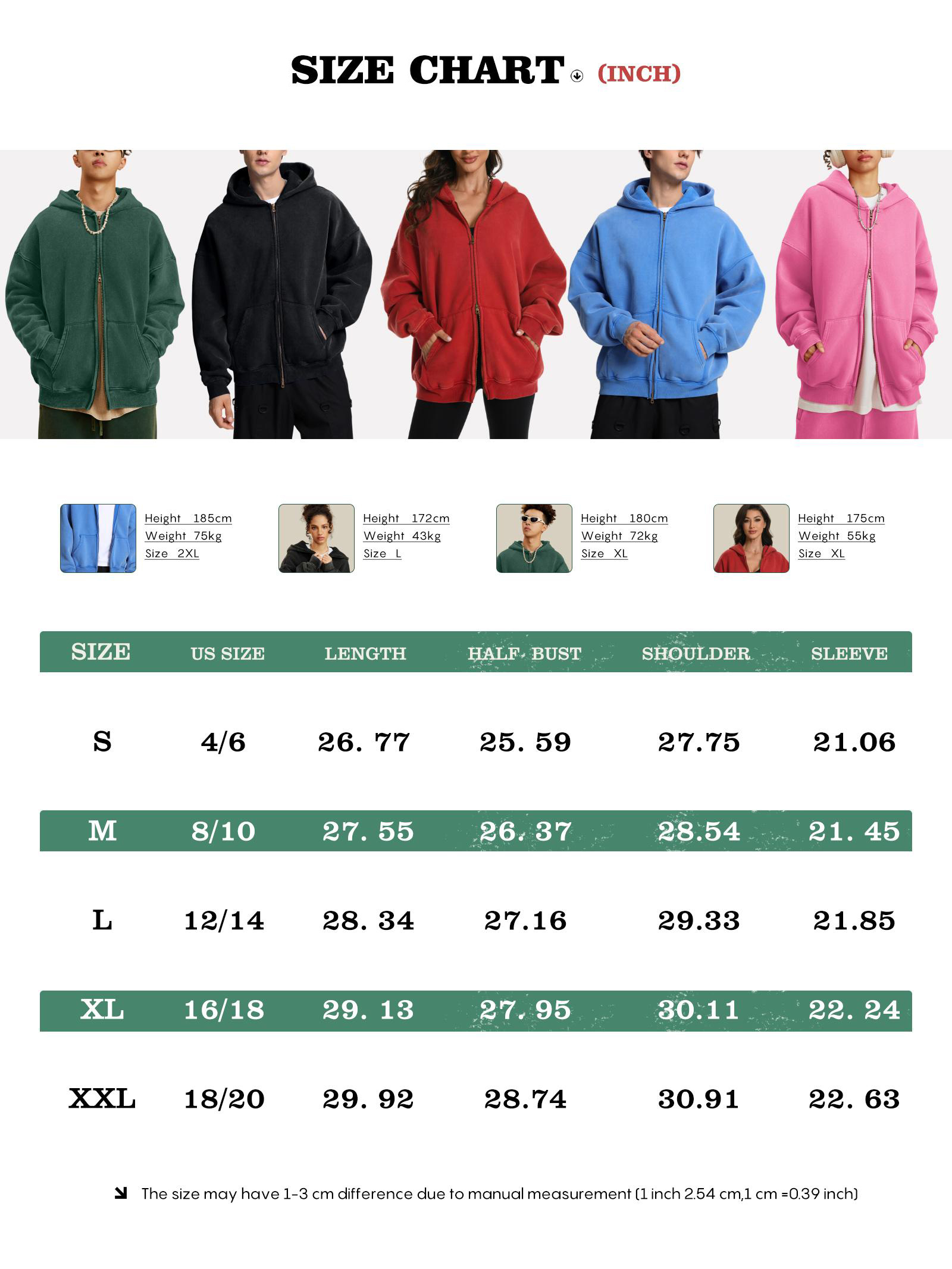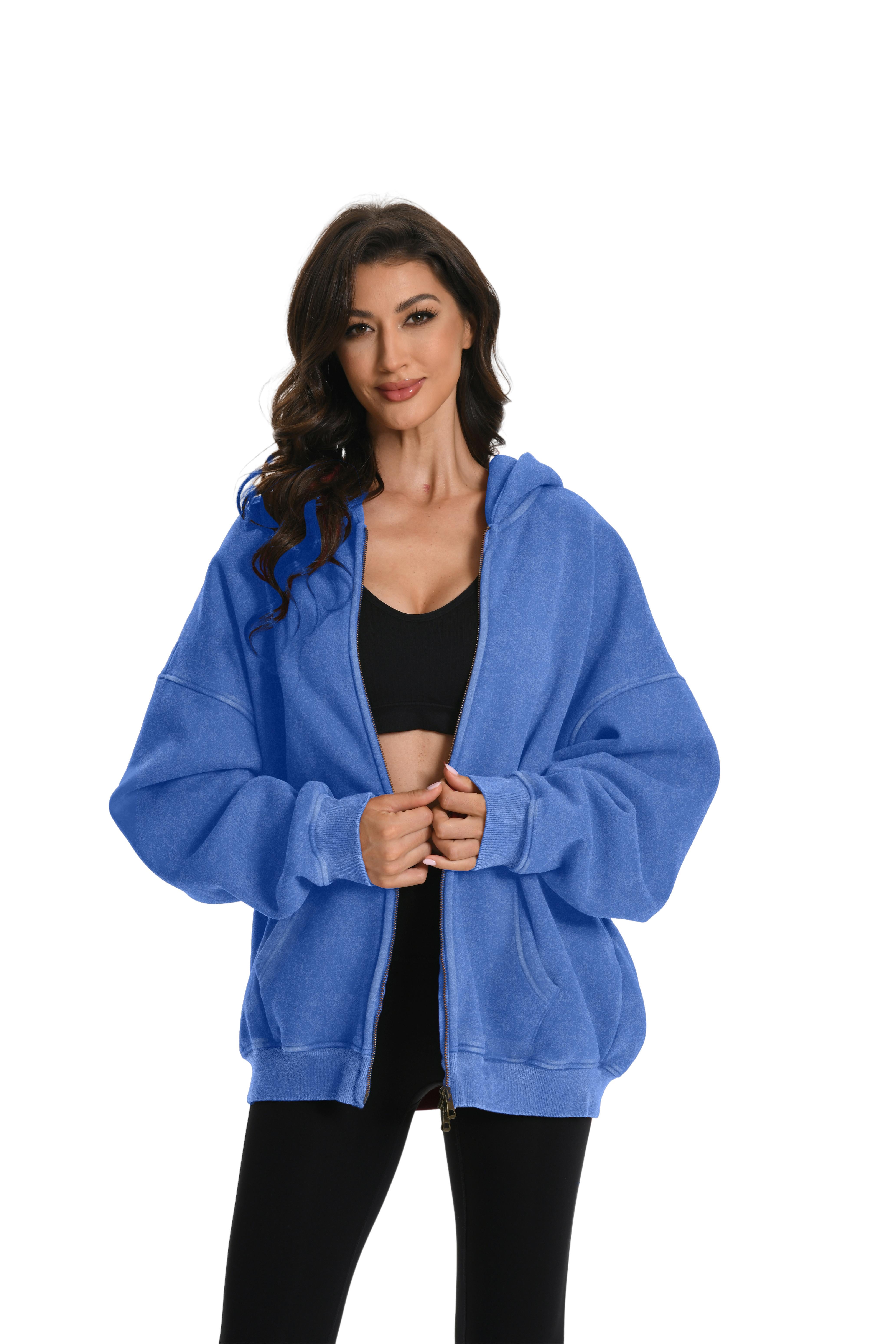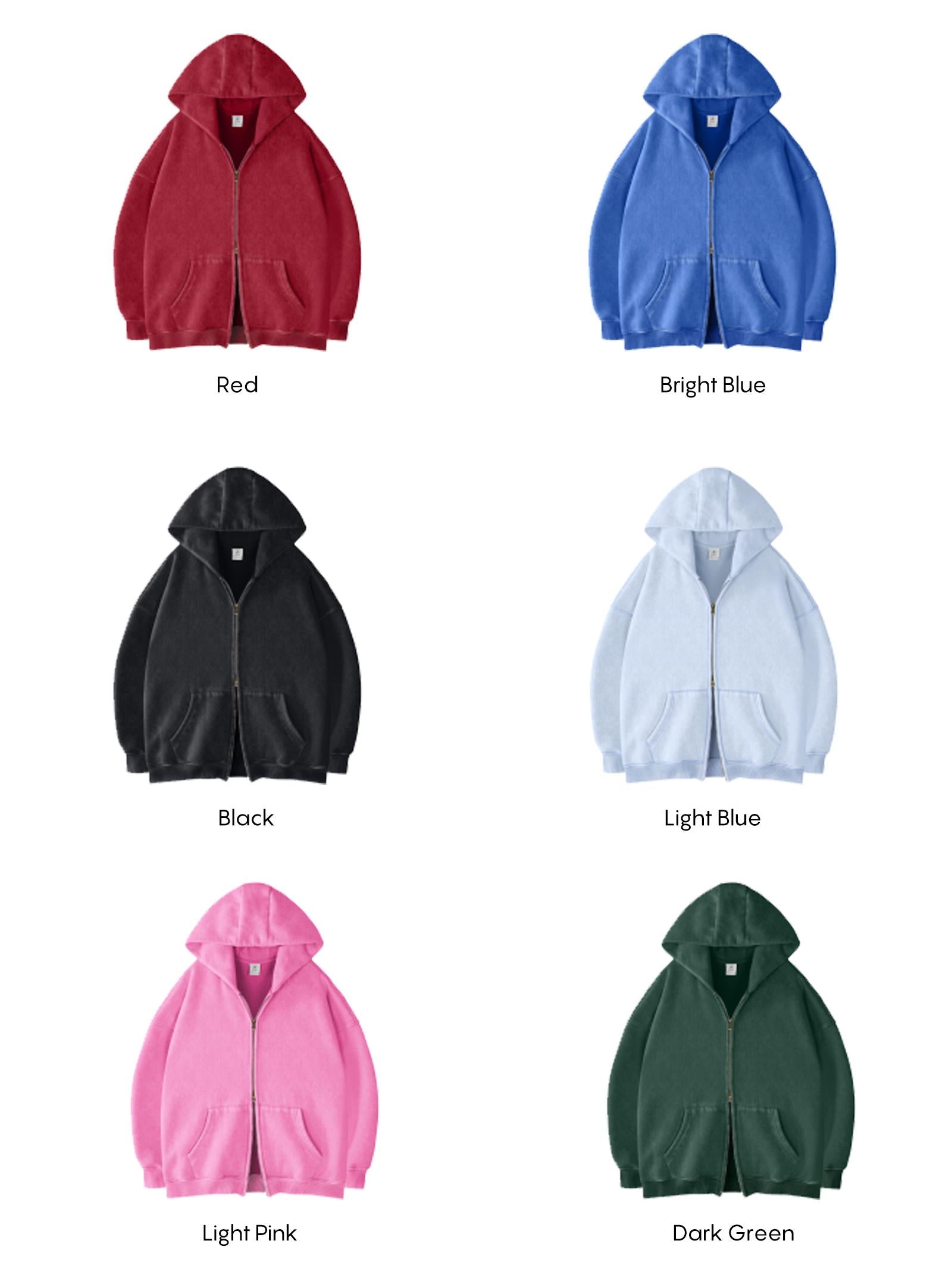 - Couples Double Zip Up Oversized Acid Wash Hoodie : Acid wash hoodie sweatshirt without drawstring,is made up of super soft and comfortable high-quality fabric.Comfy cotton fleece is brushed inside for added softness and warmth.THE LOOK - Stretch ribbed cuffs and hem,with oversized pockets to keep essentials close