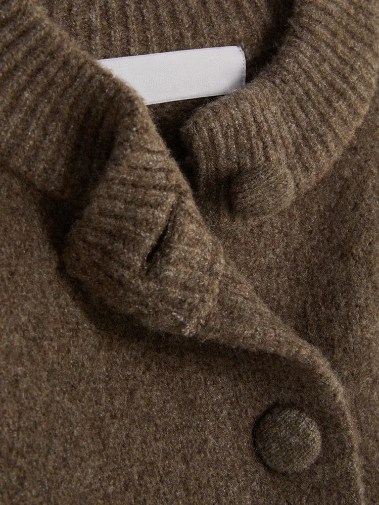 Say hello to your new throw on and go knit. This essential knitted bomber comes in a brown shade with a relaxed fit that’s easy to layer. It’s designed with long sleeves, a crew neckline and a classic button down front, plus ribbed cuffs and hem for a snug finish. The soft knit texture adds cosiness, while two patch pockets bring a touch of utility (and somewhere to tuck your hands). Great with jeans, skirts or over a dress – the style choices are endless.