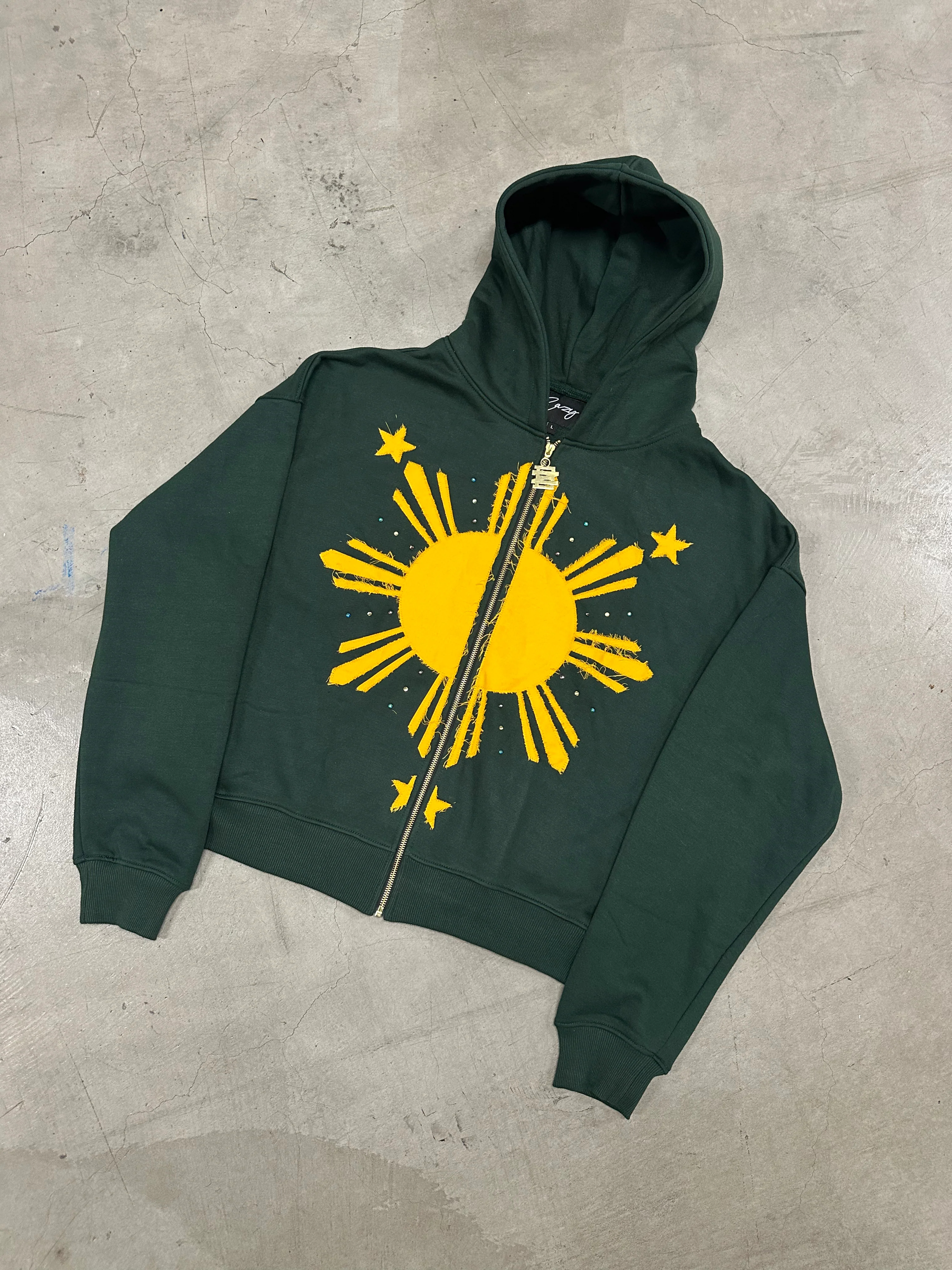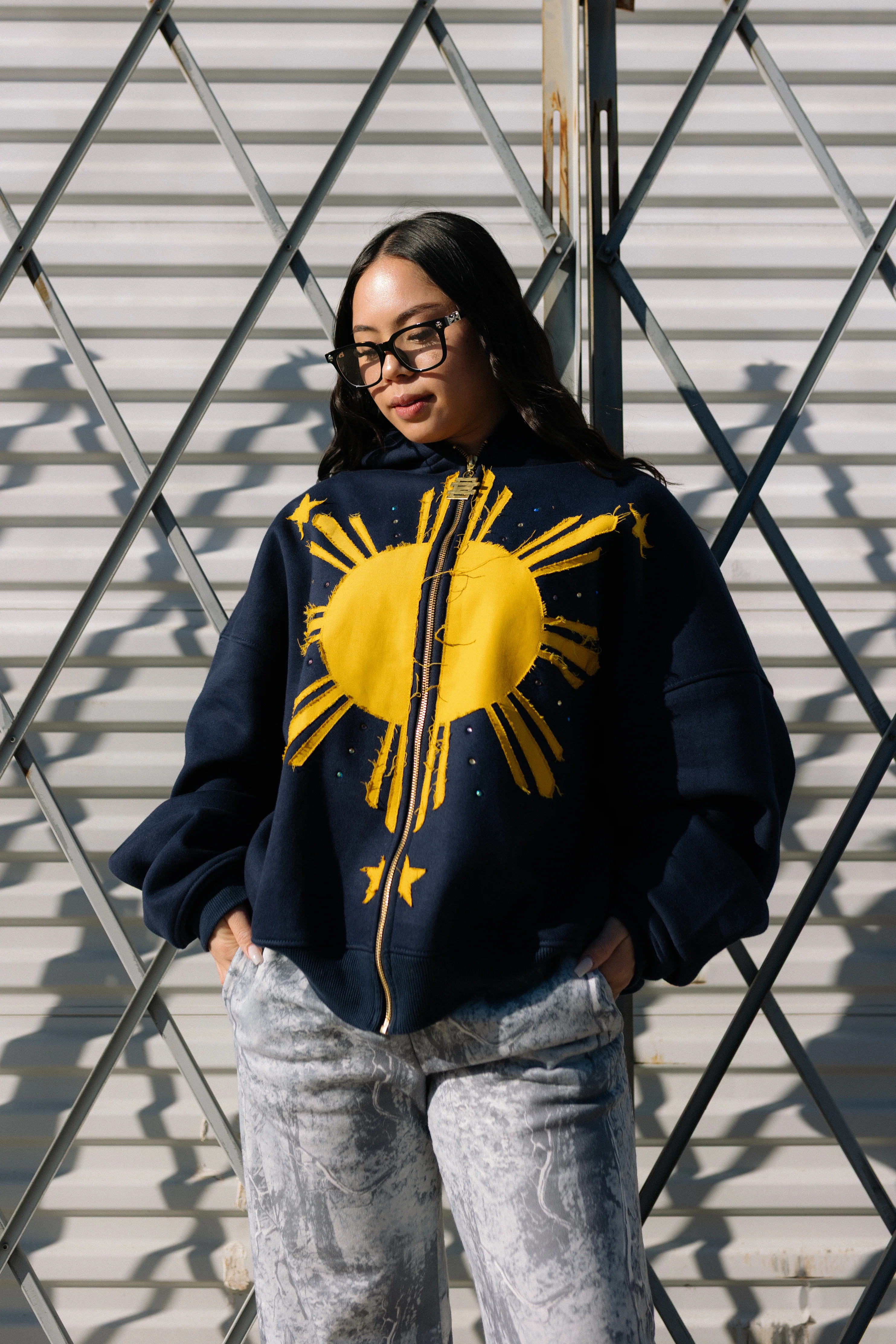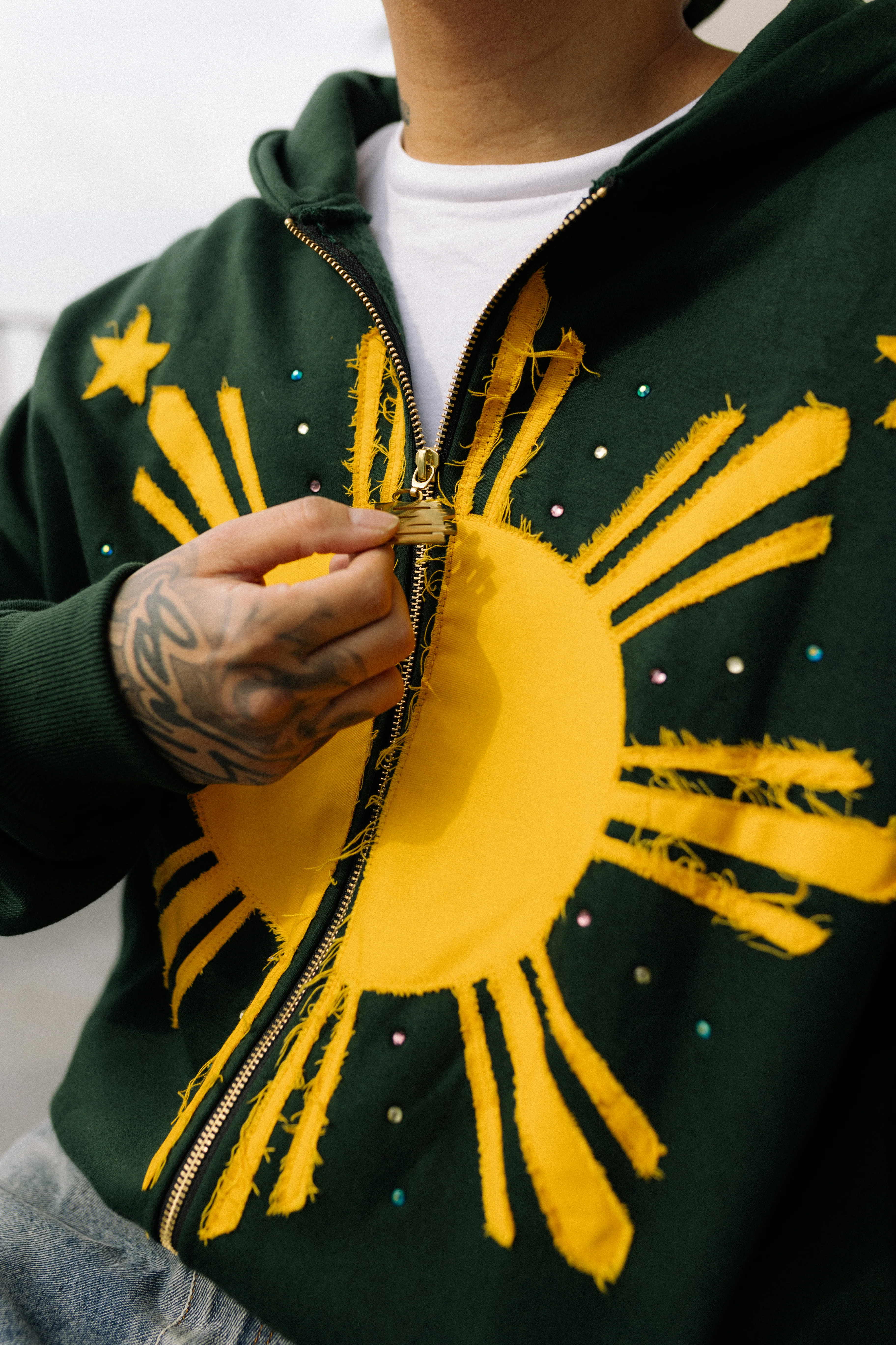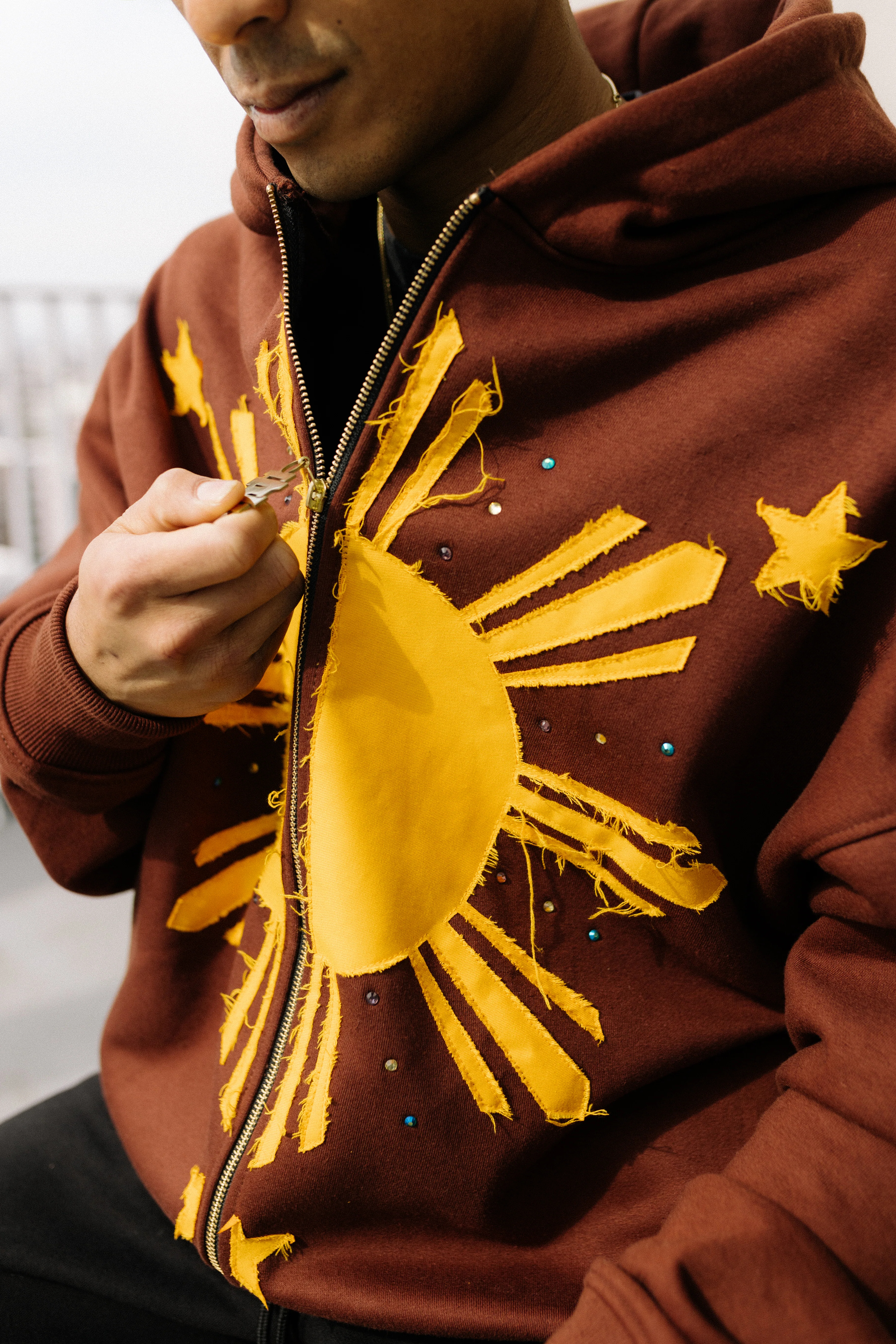 Distressed Front Embroidery applied by hand &?screenprint back hit