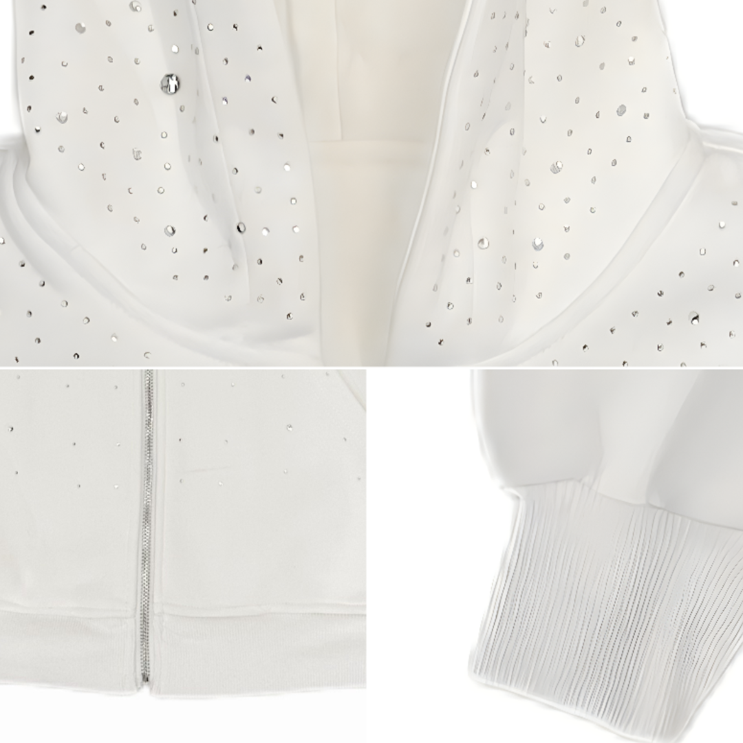 Elevate your wardrobe with the Rhinestone Galaxy Zip Up, a bold statement piece that combines streetwear aesthetics with celestial-inspired elegance. Brought to you exclusively by VYBES.