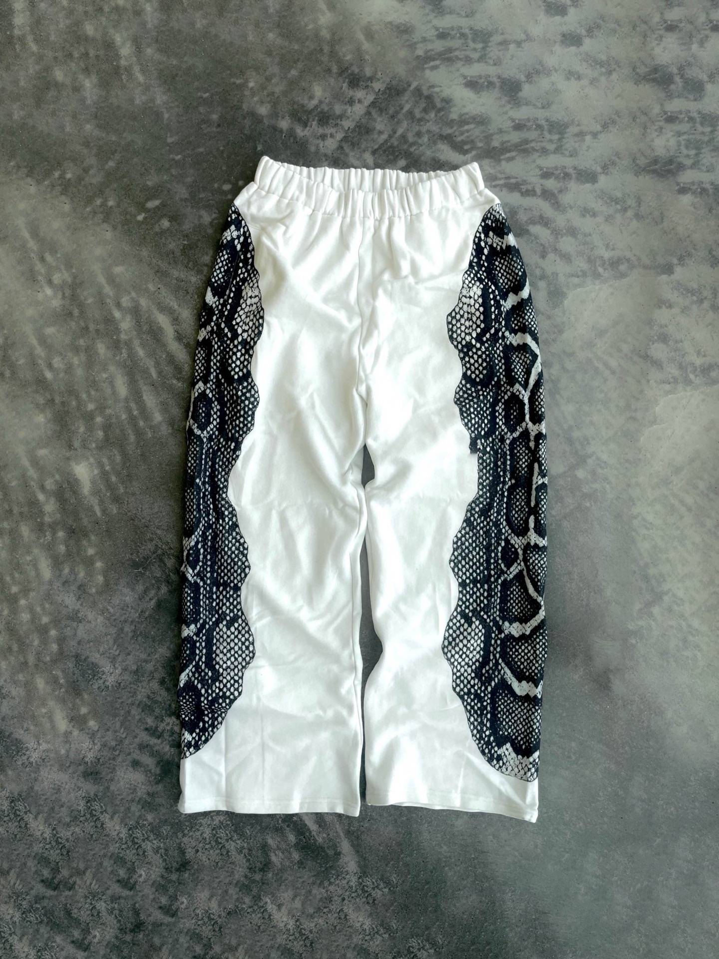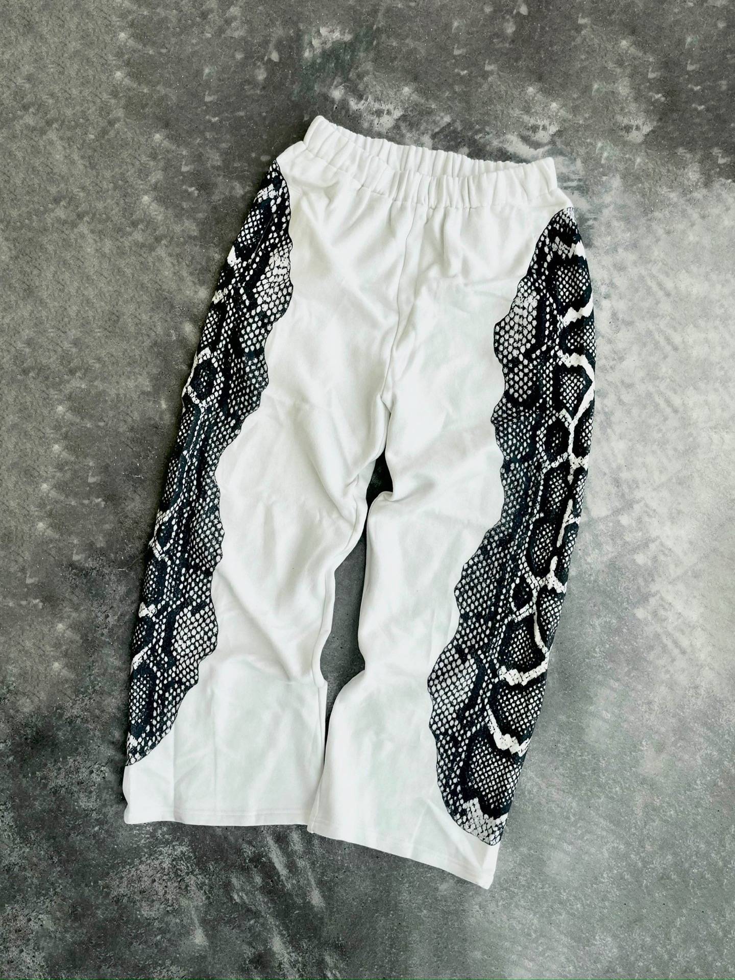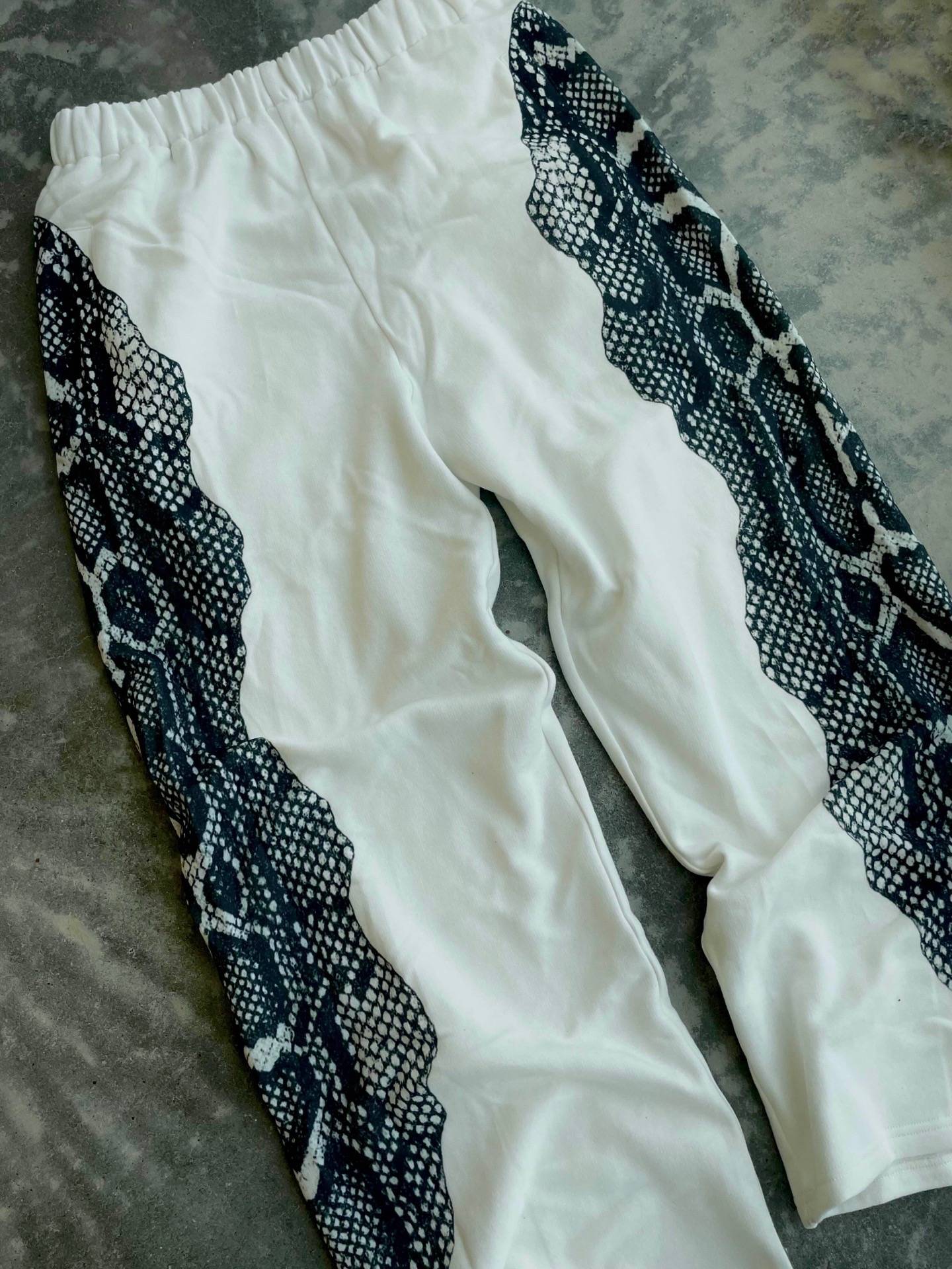 - Design: The joggers showcase a striking black and white serpentine print on both sides, contrasted against a solid white background. The design is not only stylish but also versatile, easily paired with various tops and shoes.