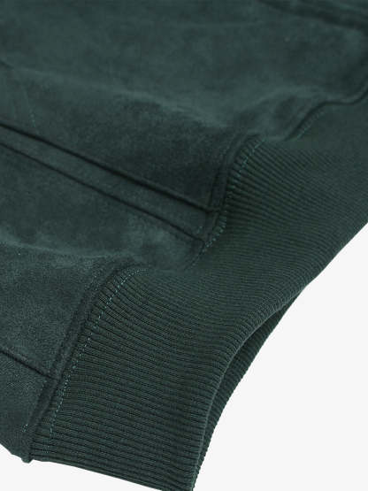 Suede Letter Embroidered Cropped Zip-Up Sweatshirt