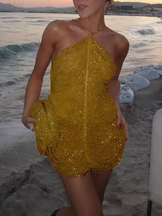 Tassel Halterneck Mini Dress