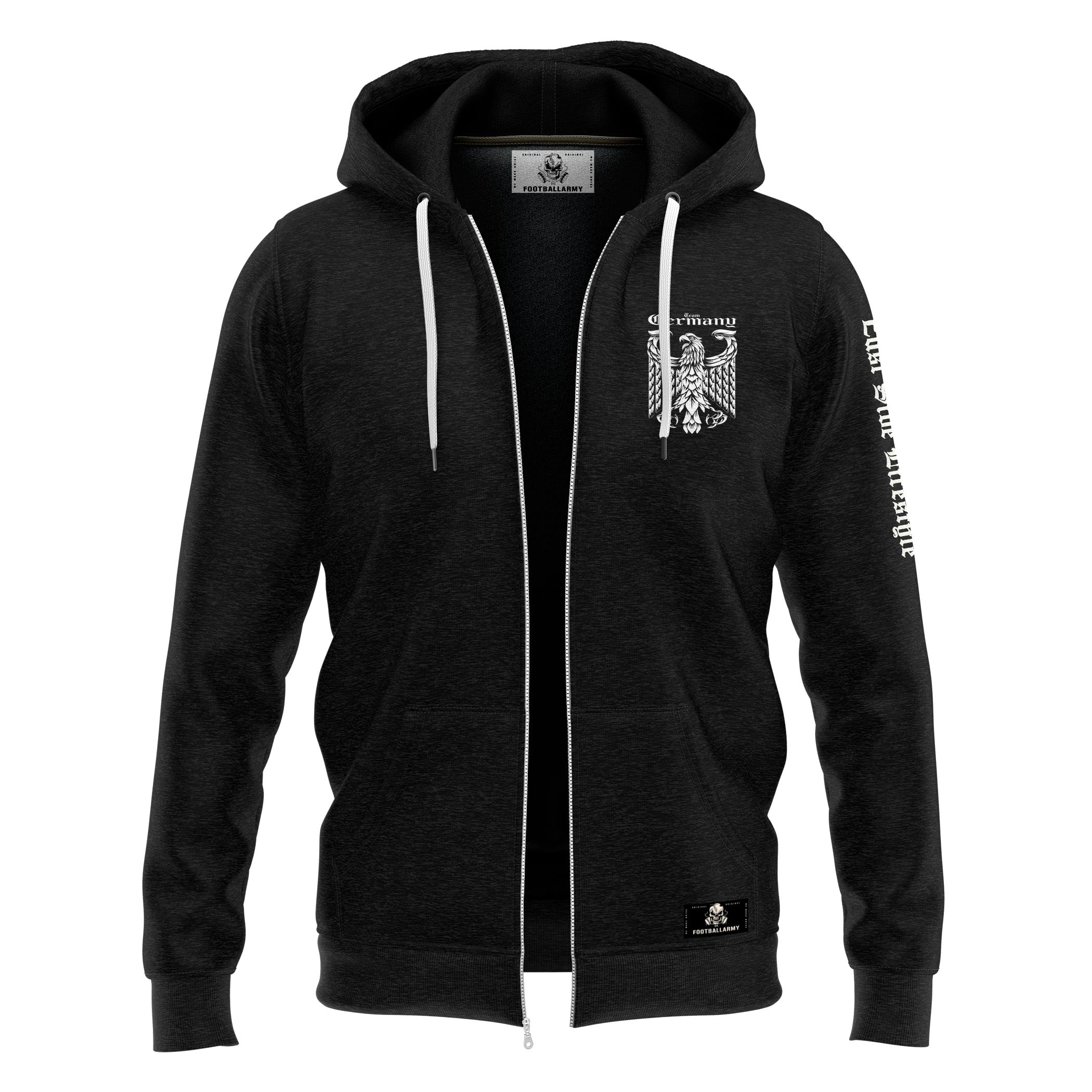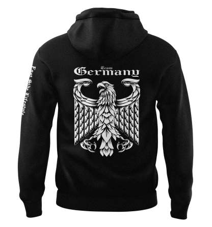 Premium Jacke in schwarz mit handgefertigtem Adler Motiv auf Brust und Rücken. Team Germany Schriftzug auf dem Arm.
