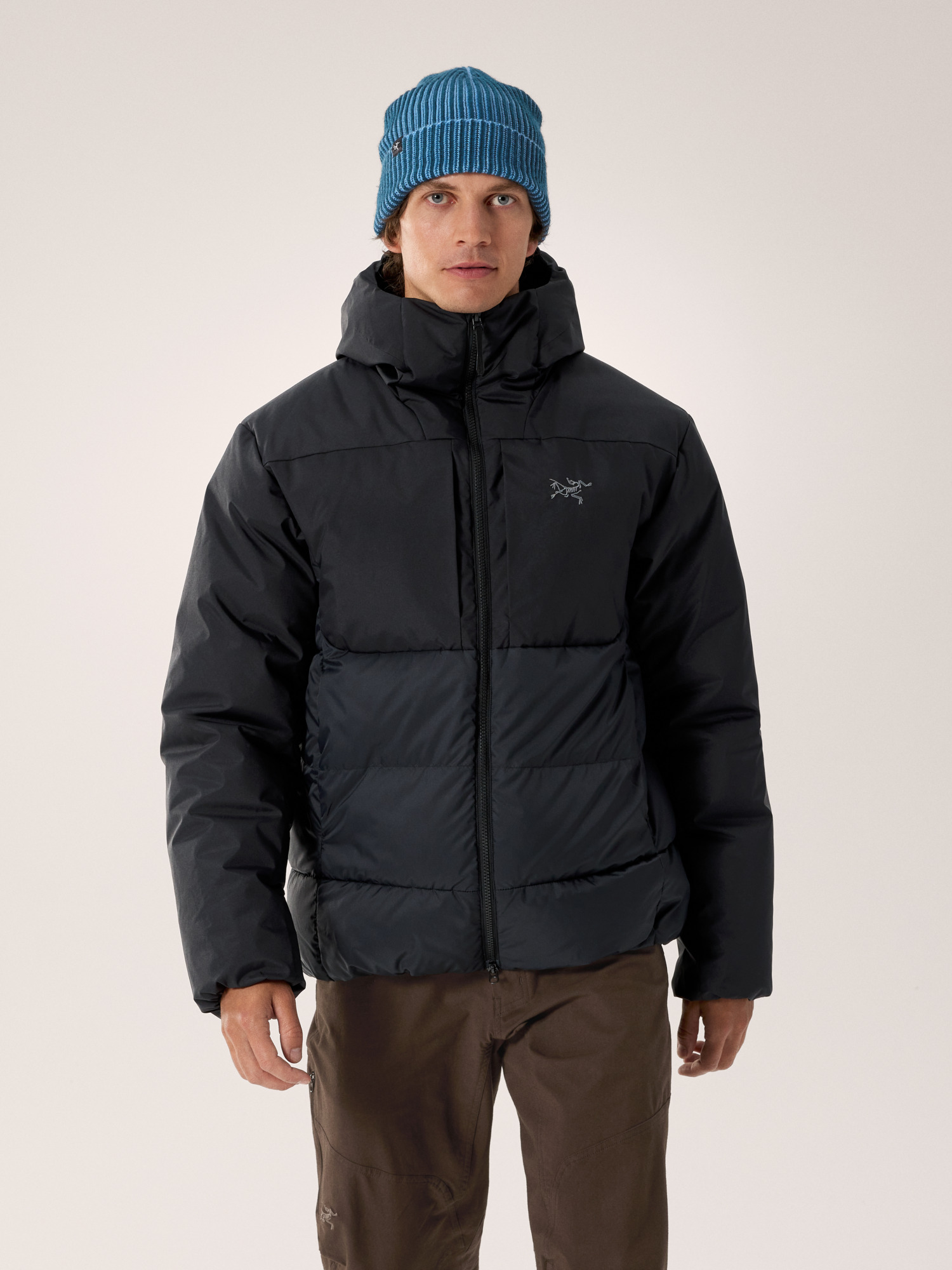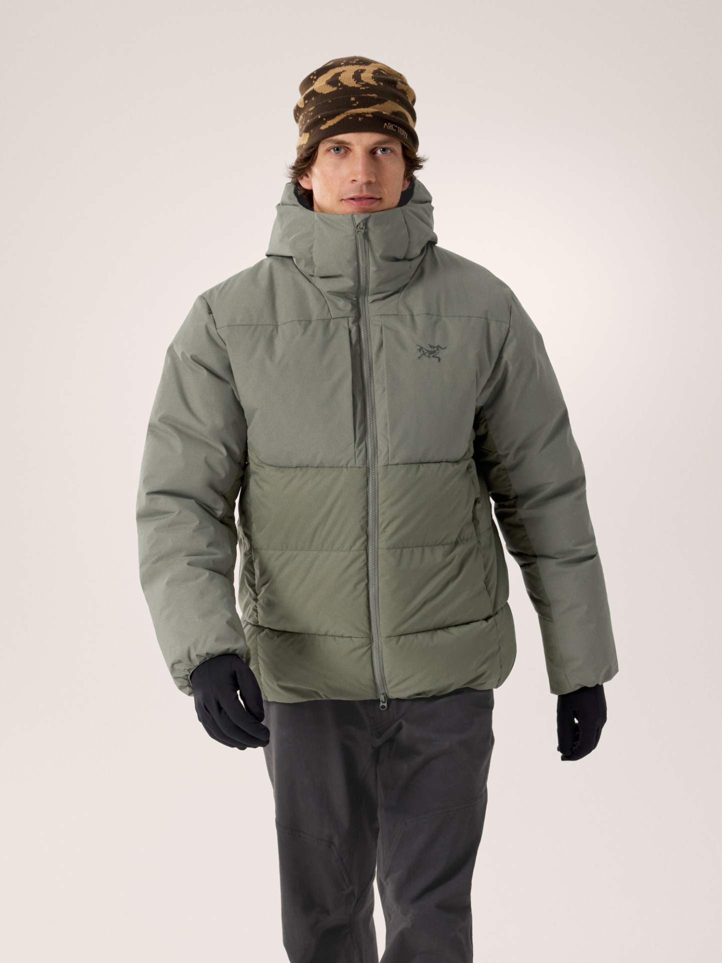 There's cold, and there's severe cold. Thorium SV Hoody – our warmest Thorium hoody – is built for the places winter lows get extreme. Constructed with oversized box-wall baffles to eliminate cold spots and maximize loft, it's packed with European grey goose down for efficient, effective warmth. Breathable 80D 2L ePE GORE-TEX overlays on the shoulders and insulated hood cut the chill and repel light precipitation, and Coreloft™ synthetic insulation warms areas prone to moisture.