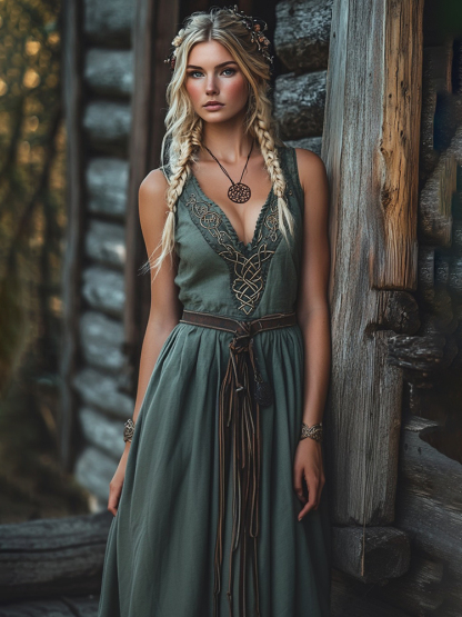 Vintage Viking Celtic Knot Design Linen Maxi Tank Dress
