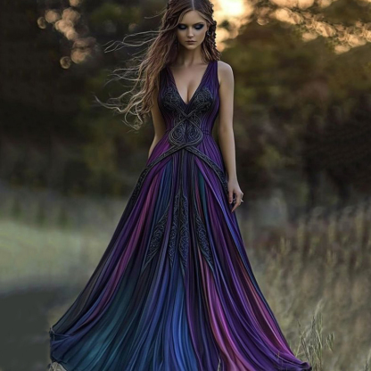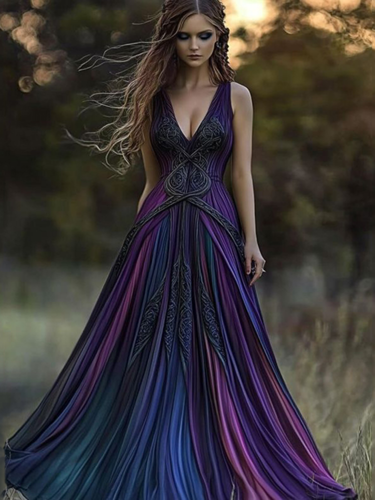 Vintage Viking Pattern Gradient Casual Tank Dress
