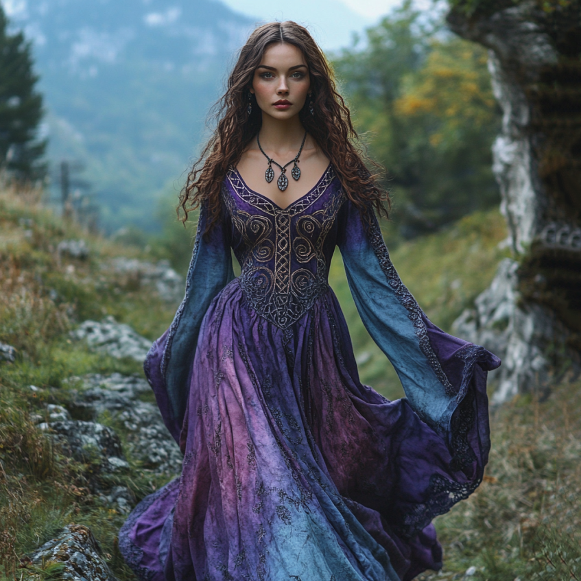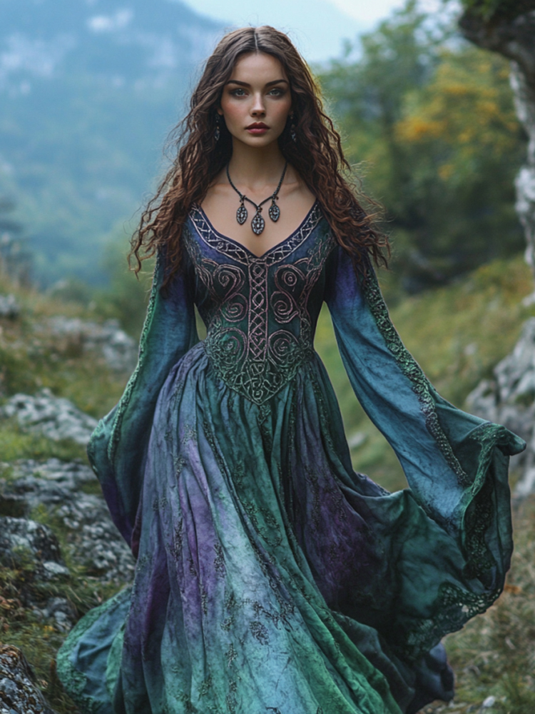 Vintage Viking Tribal Celtic Knot Art Linen V-neck Maxi Dress