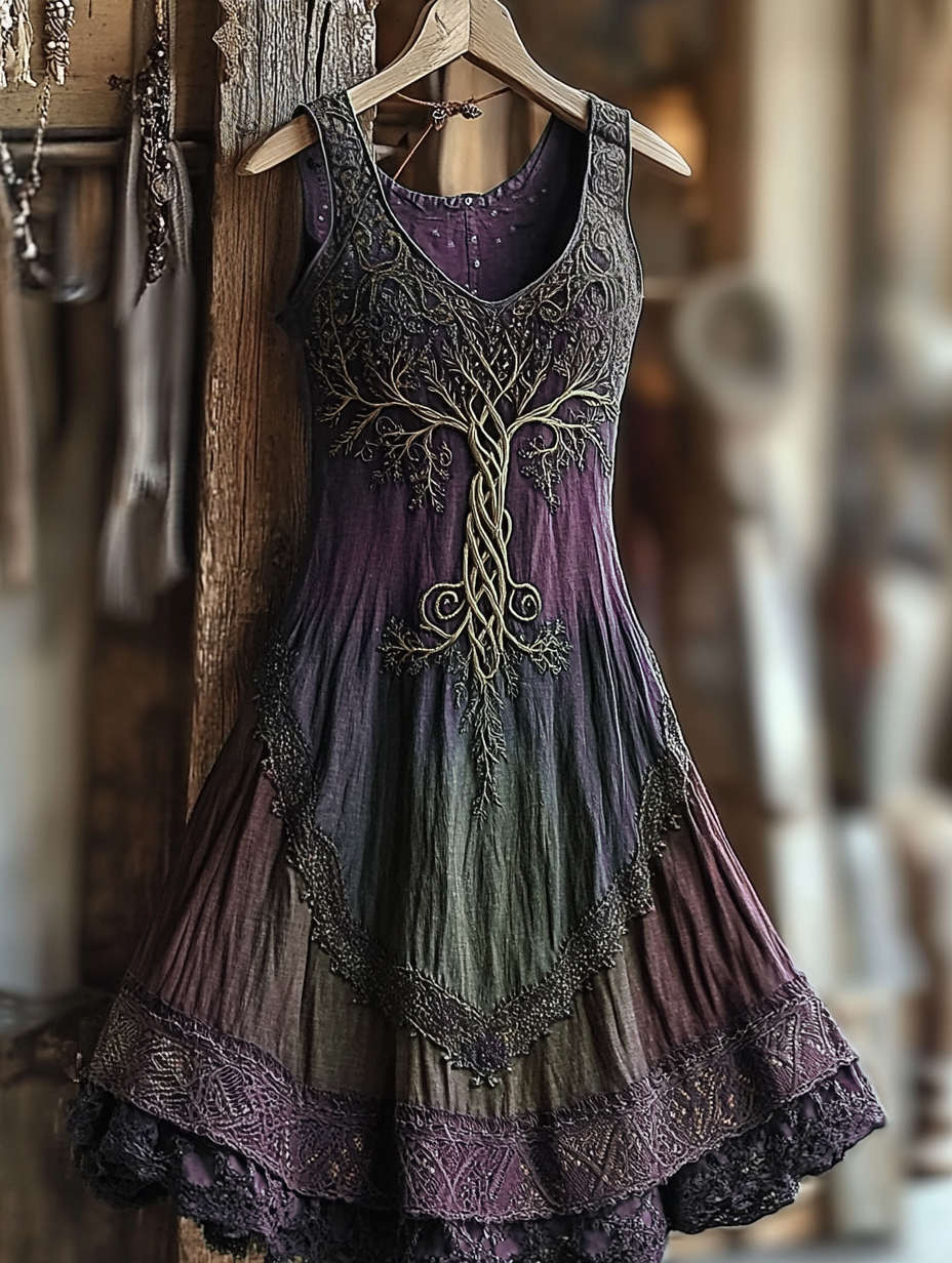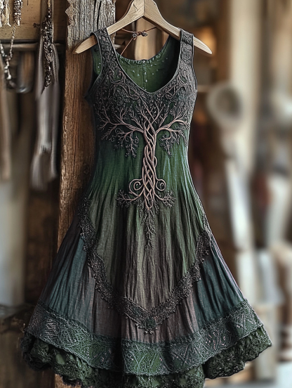 Women's Vintage Viking Tree Of Life Gradient Linen Dress