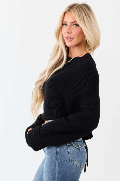 Black Mock Neck Back Cut Out Ribbed Sweater
