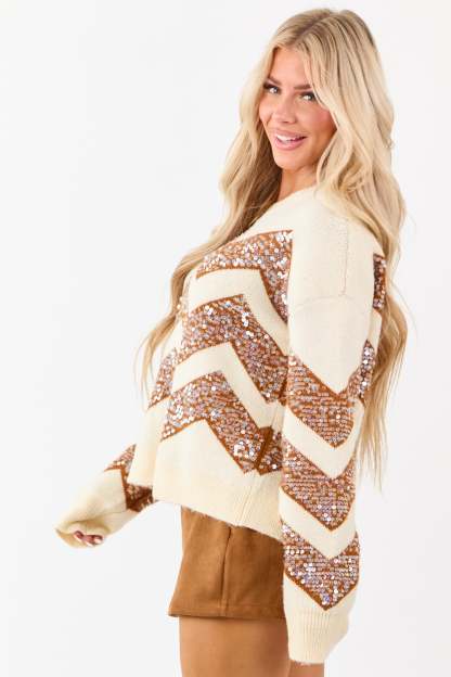 - Add some sparkle to your cozy days in this chevron pumpkin and ivory sweater, featuring shimmering sequins and a relaxed knit for an effortlessly chic, comfortable fit.