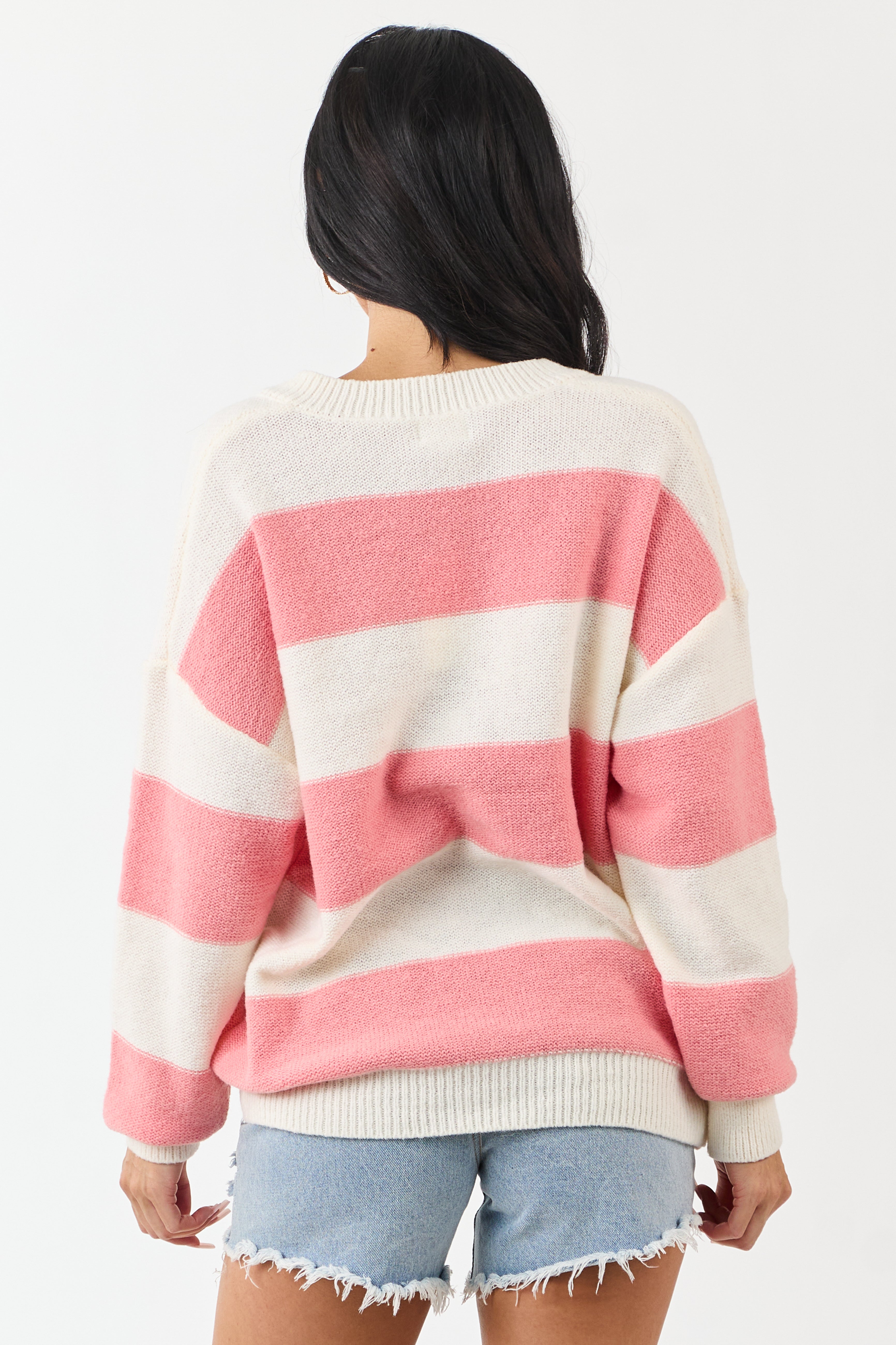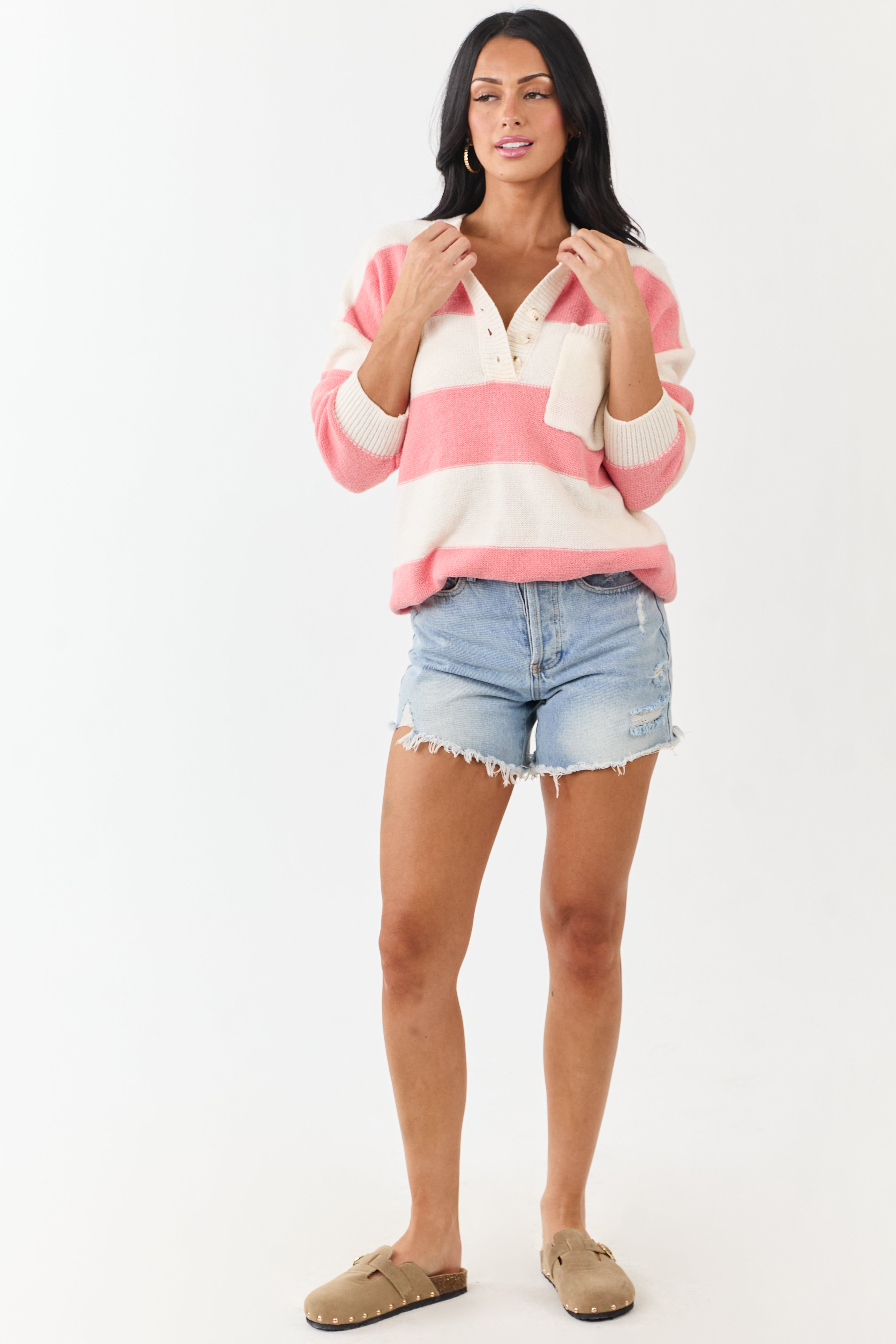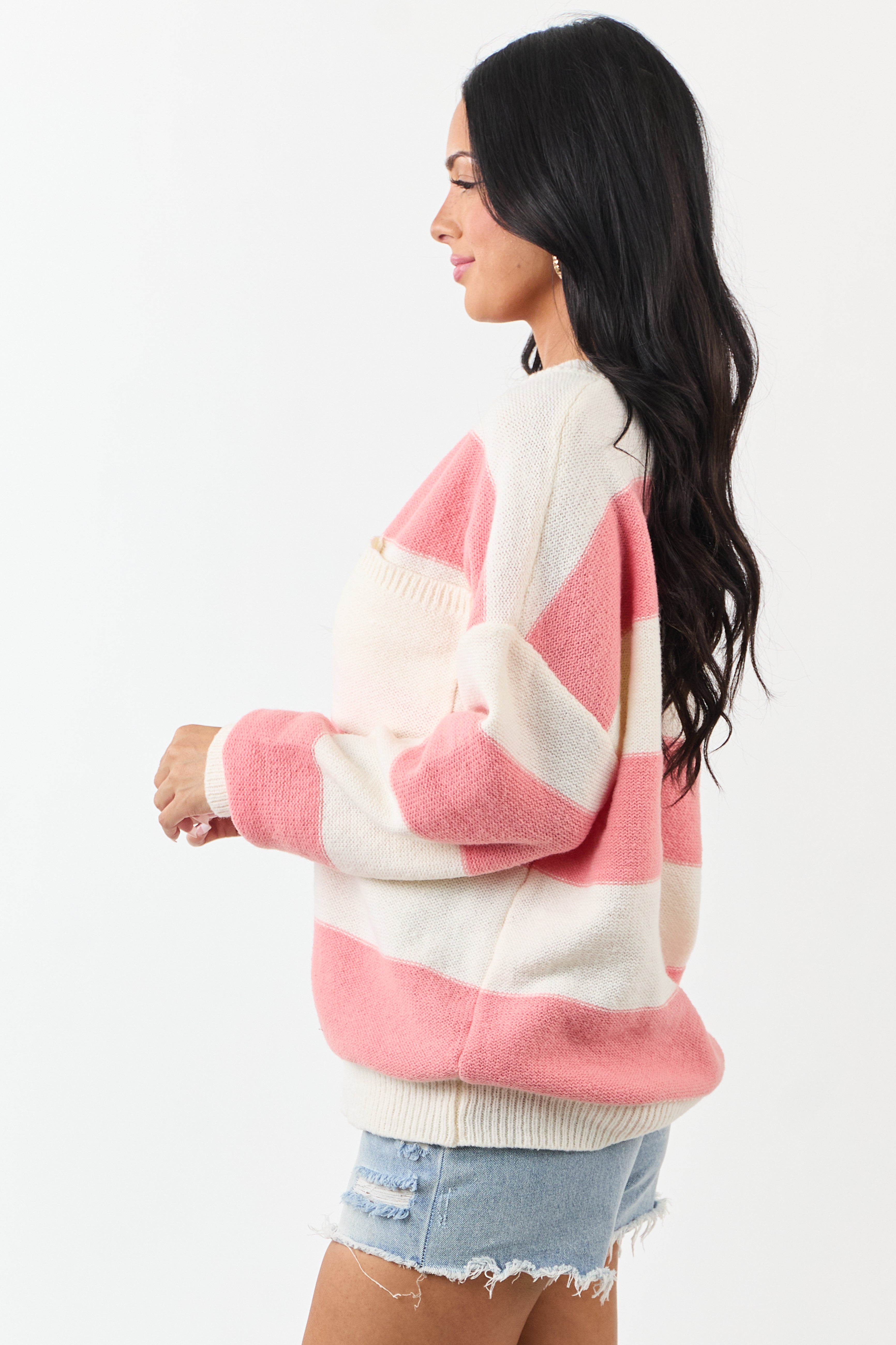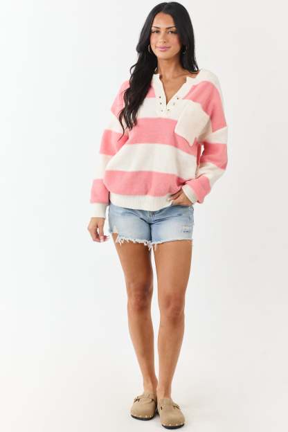Punch and Cream Thick Stripe Henley Sweater